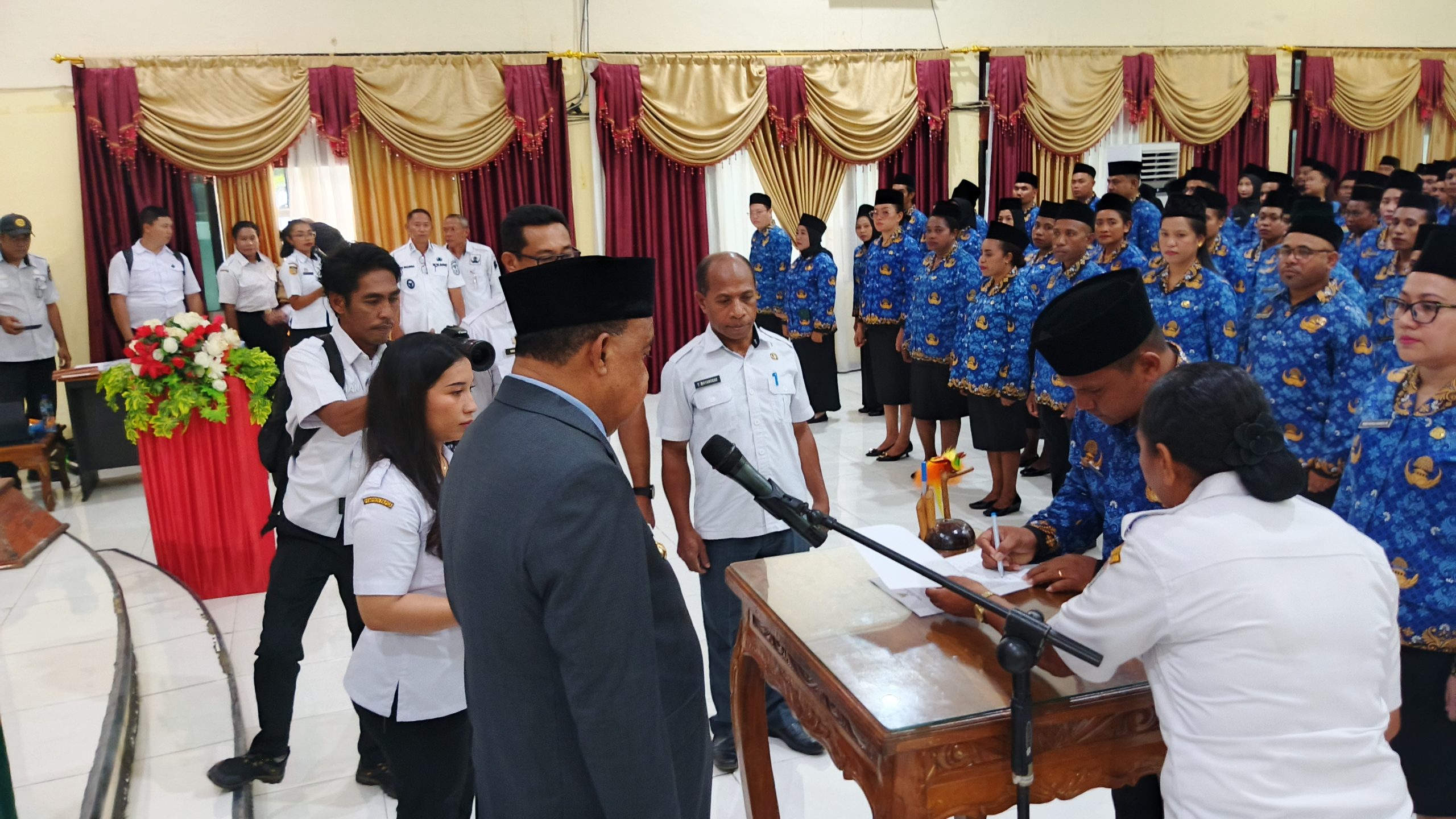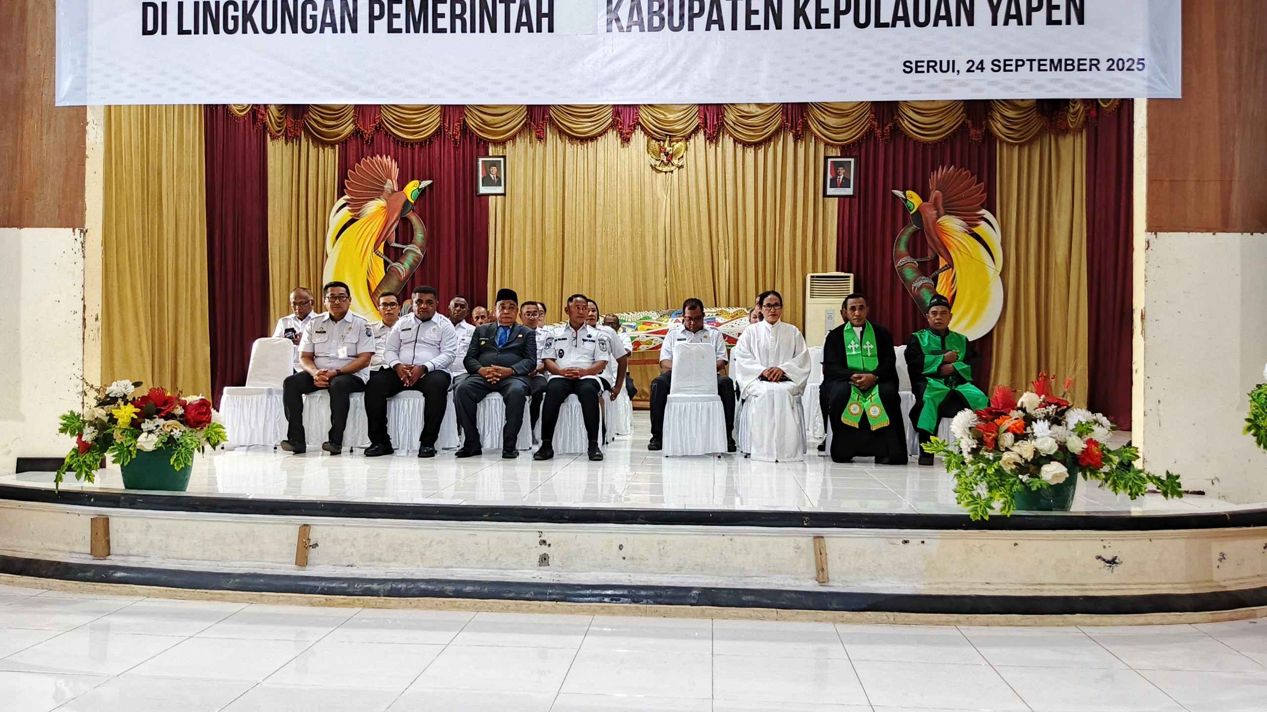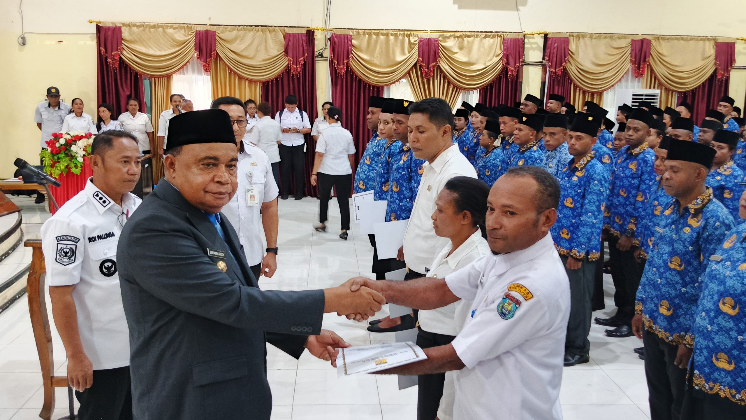 Prokopim Setda – Pemerintah Kabupaten Kepulauan Yapen menggelar acara penyerahan Sertifikat Orientasi Pegawai Pemerintah dengan Perjanjian Kerja (PPPK) dan Sertifikat Surat Tanda Tamat Pelatihan Prajabatan (STTPL) CPNS Formasi Tenaga Honorer Tahun 2021, sekaligus pengambilan sumpah/janji CPNS, bertempat di Gedung Silas Papare, Rabu (24/09/2025).