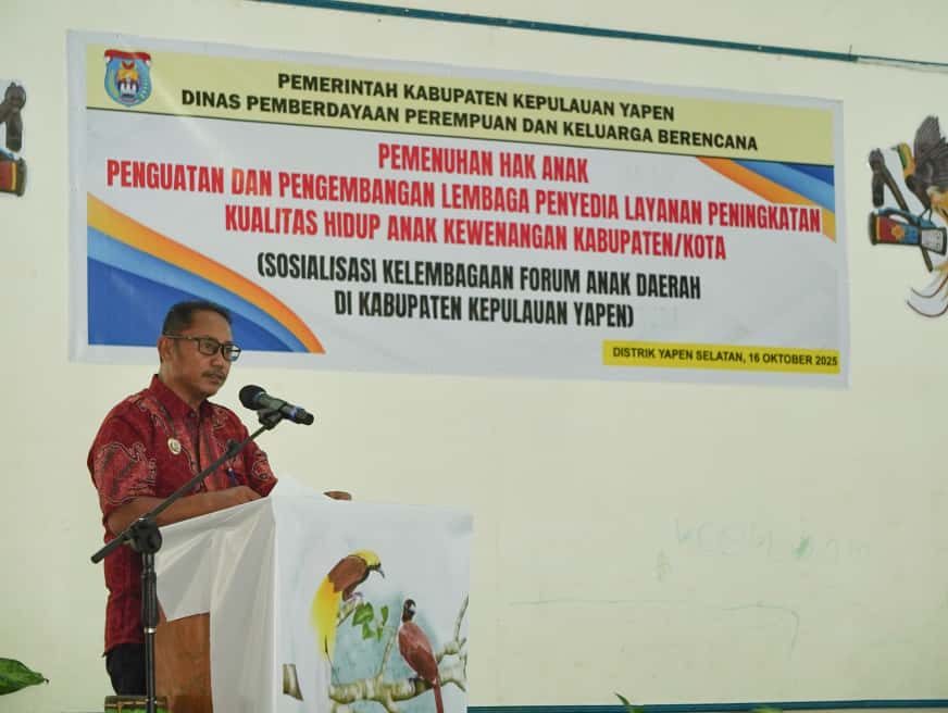 Prokopim Setda — Kamis (16/10/2025), Bertempat Gedung Serba Guna Gereja Katholik, Pemerintah Kabupaten Kepulauan Yapen melalui Dinas Pemberdayaan Perempuan dan KB Kepulauan Yapen menggelar Sosialisasi dan Pembentukan Forum Anak Tahun 2025, yang melibatkan perwakilan anak-anak dari berbagai distrik.