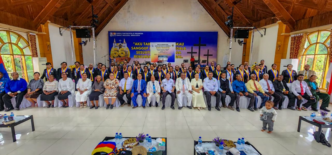 Hadir pula perwakilan Kementerian Agama Serui, Pdt. Philipus Yowei, para pejabat gereja, penasehat Majelis Daerah, majelis wilayah, para gembala dari Zona IV, hamba-hamba Tuhan lintas denominasi, serta tamu undangan penting lainnya.