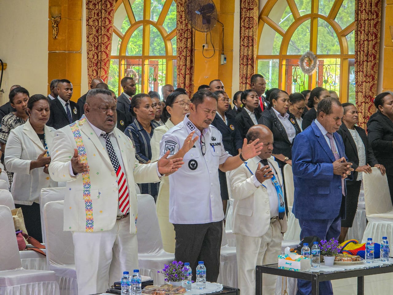 Dalam sambutannya, Wakil Bupati Roi Palunga menyampaikan rasa syukur atas terselenggaranya kegiatan tersebut serta memberikan apresiasi kepada pihak pengelola dan pengajar Sekolah Alkitab Waropen.