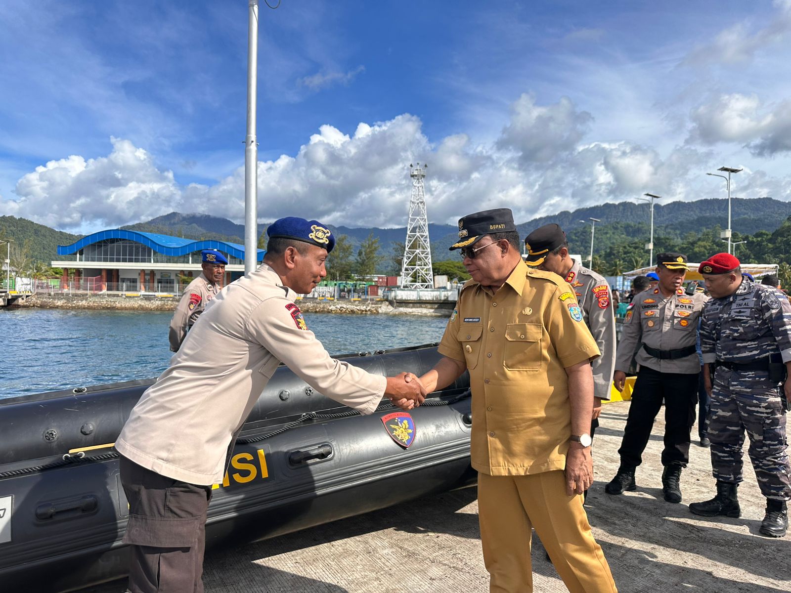 Kegiatan ini turut dihadiri oleh Bupati Kepulauan Yapen, Benyamin Arisoy, yang bersama Kapolres melakukan pengecekan langsung terhadap personel, peralatan, dan sarana pendukung penanggulangan bencana. Pemeriksaan meliputi kesiapan perahu karet, kendaraan taktis, alat komunikasi, hingga perlengkapan evakuasi yang digunakan dalam penanganan darurat di lapangan.