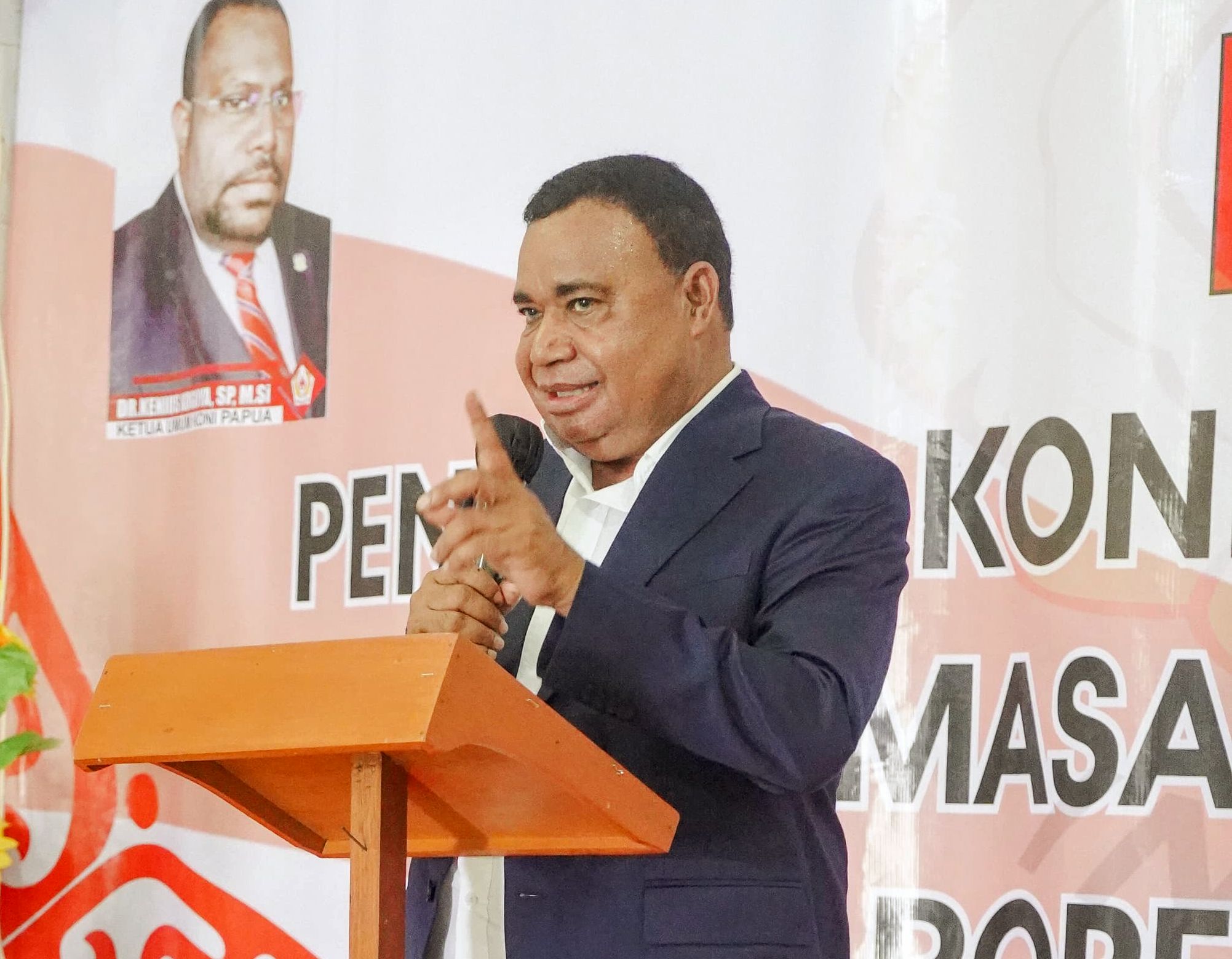 Dalam sambutannya, Bupati Benyamin Arisoy menyampaikan apresiasi kepada KONI Provinsi Papua atas kehadiran dan proses pelantikan, serta menegaskan bahwa momentum pelantikan bukan hanya seremonial, tetapi awal dari komitmen besar memperkuat tata kelola olahraga di Kepulauan Yapen.
