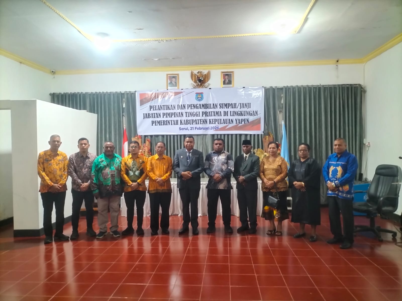 Bupati Kepulauan Yapen Lantik Kepala BPBD Definitif, Sabtu 21/2/2026 (Foto : Marvin)