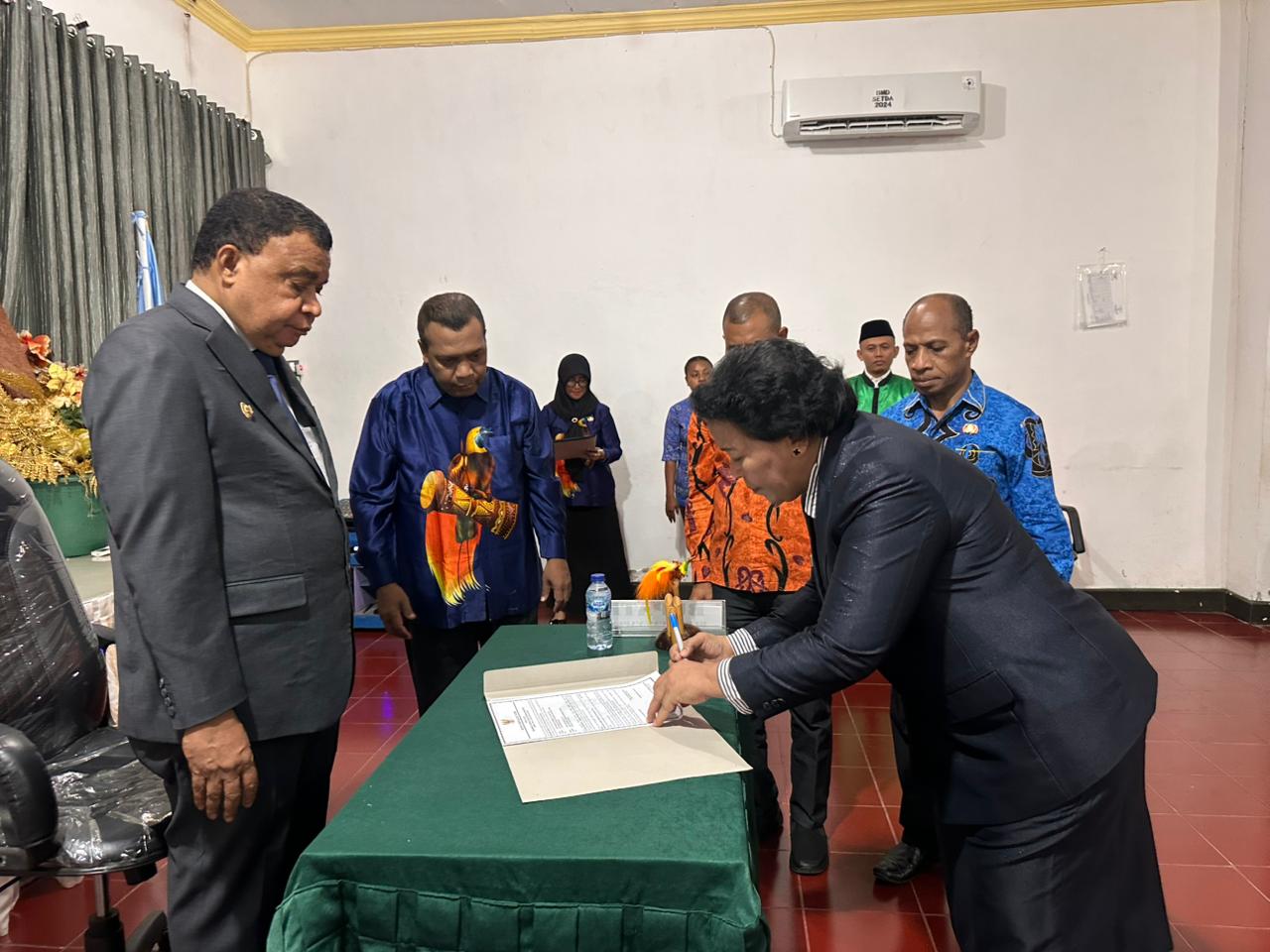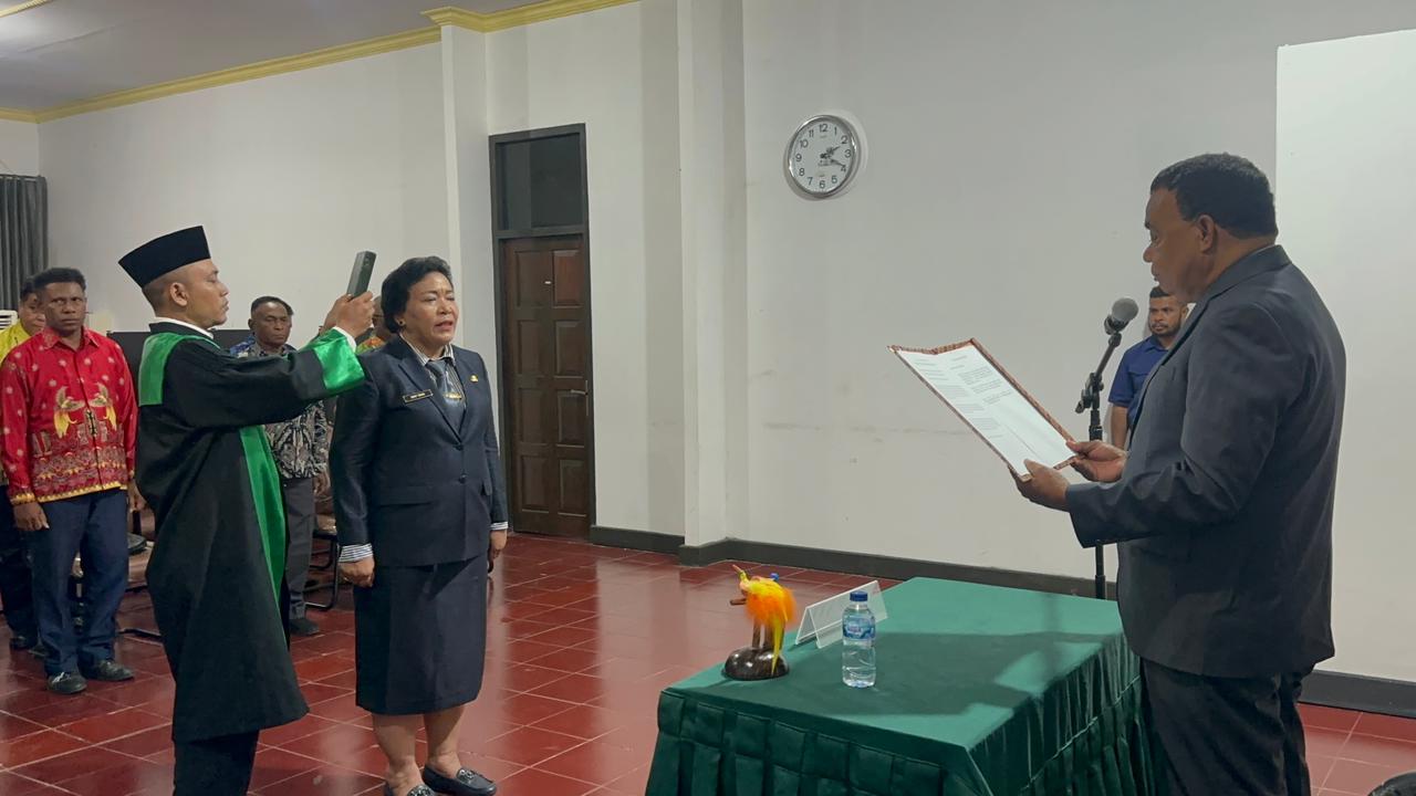 Dalam pelantikan tersebut, Bupati Benyamin Arisoy secara resmi melantik Erny R. Tania, S.IP sebagai Staf Ahli Bupati Bidang Kemasyarakatan dan Sumber Daya Manusia Kabupaten Kepulauan Yapen.