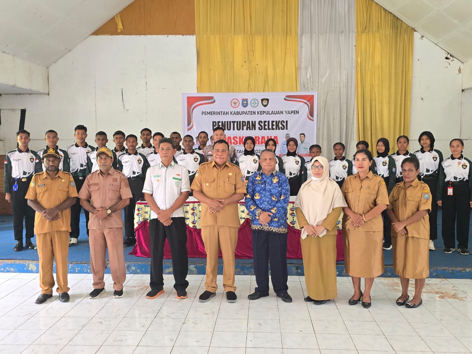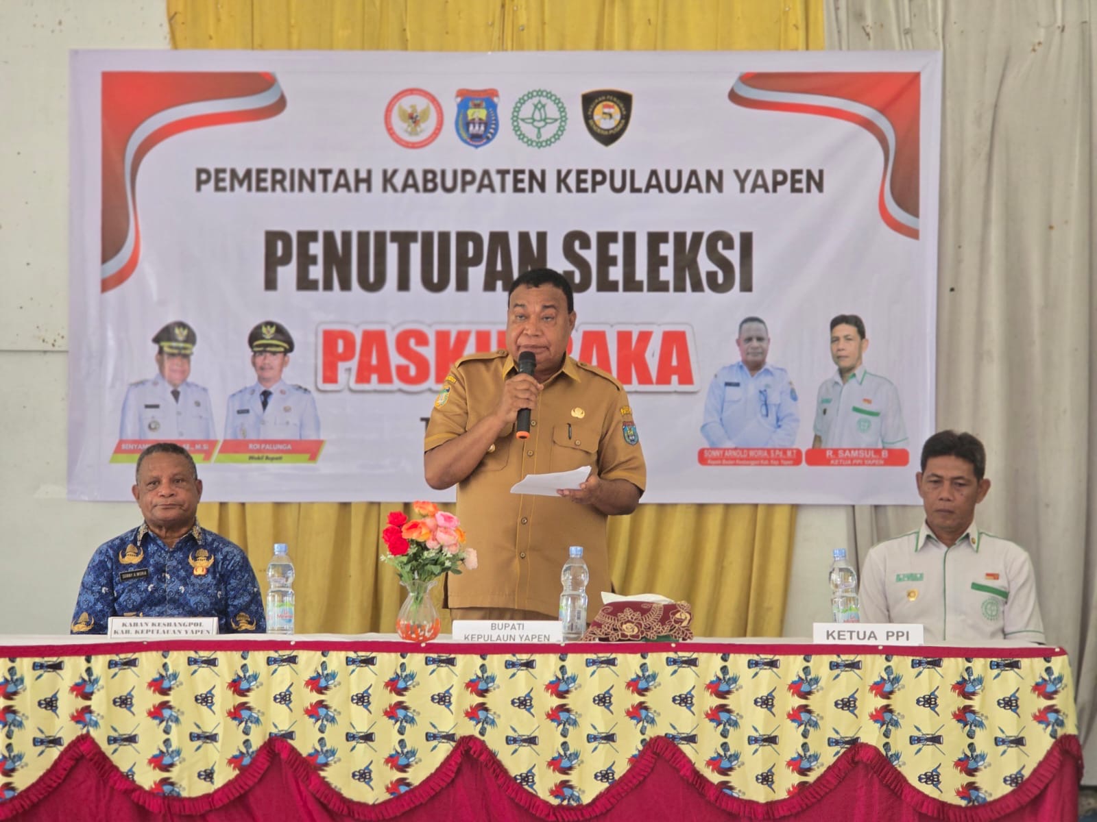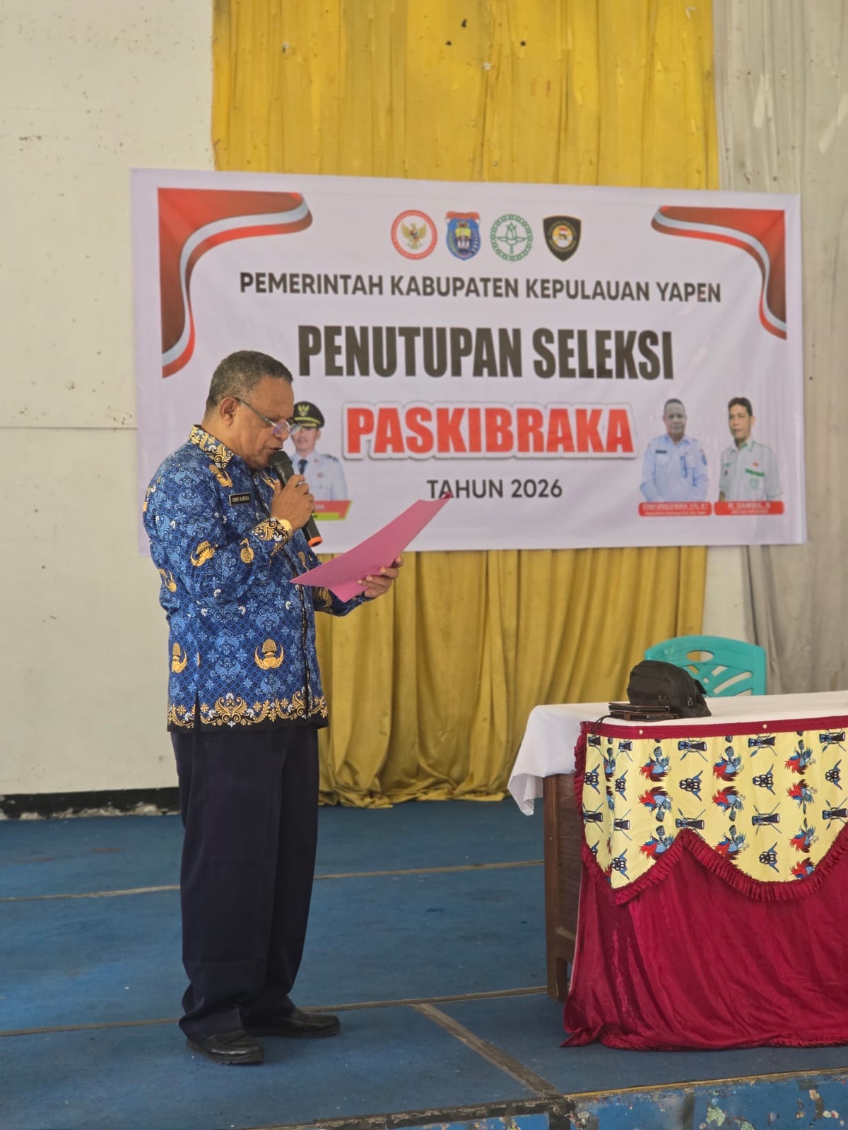Kepyapenkab.go.id, Serui – Bupati Kepulauan Yapen, Benyamin Arisoy, secara resmi menutup seleksi Calon Pasukan Pengibar Bendera Pusaka (Paskibraka) Kabupaten Kepulauan Yapen Tahun 2026, Selasa (17/3/2026) di Gedung KNPI Serui.