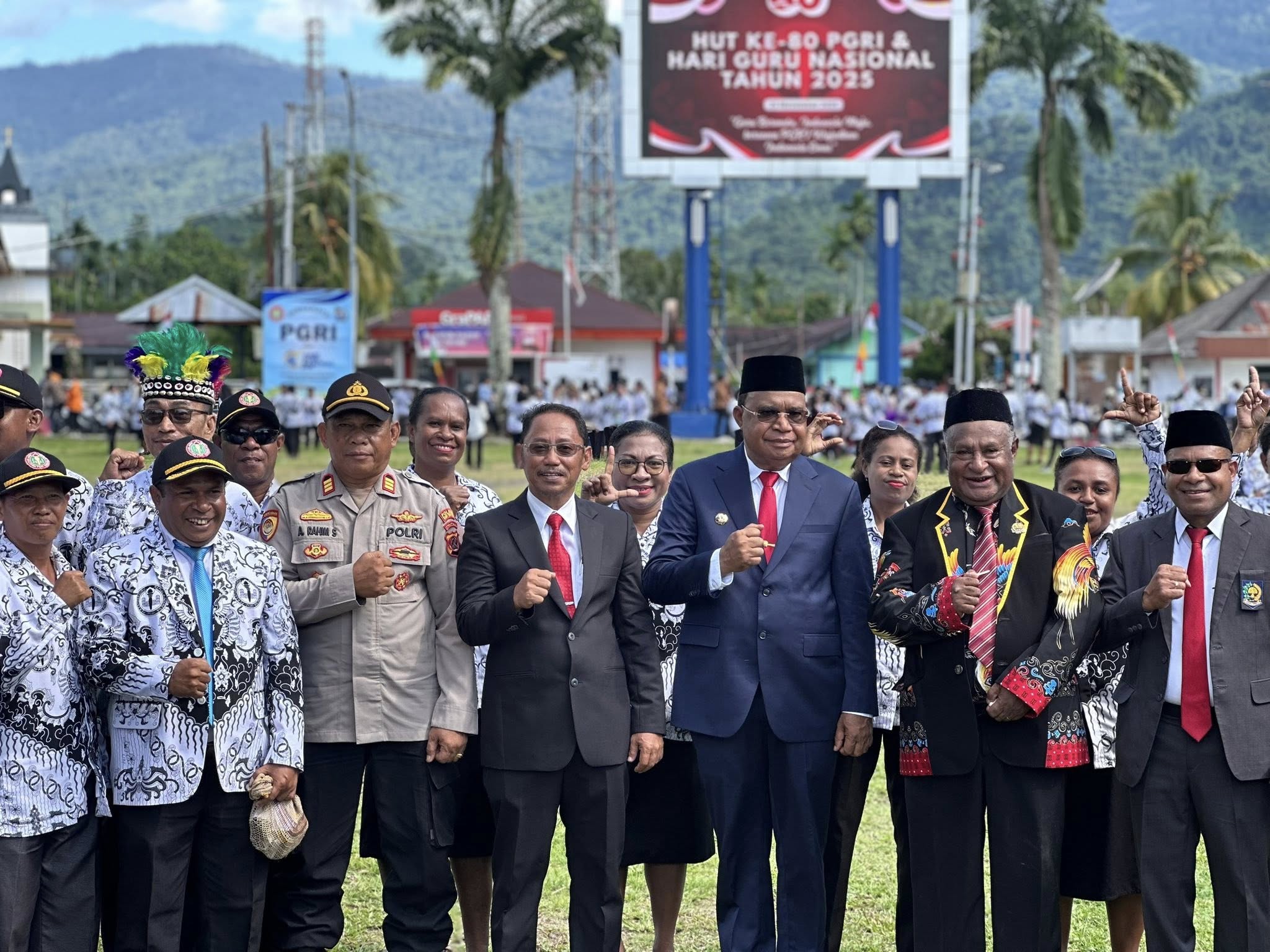 Di tengah barisan itu, Pemerintah Kabupaten Kepulauan Yapen menggelar upacara peringatan Hari Guru Nasional dan HUT PGRI ke-80 Tahun 2025. Bupati Kepulauan Yapen memimpin jalannya upacara sebagai inspektur, sekaligus menyampaikan amanat Menteri Pendidikan Dasar dan Menengah RI yang menjadi pesan inti pada momentum bersejarah ini.