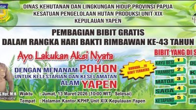 Kepyapenkab.go.id, Serui— Dalam rangka memperingati Hari Bakti Rimbawan ke-43, Dinas Kehutanan dan Lingkungan Hidup Provinsi Papua melalui Kesatuan Pengelolaan Hutan Produksi (KPHP) Unit XIX Kepulauan Yapen menggelar kegiatan pembagian…