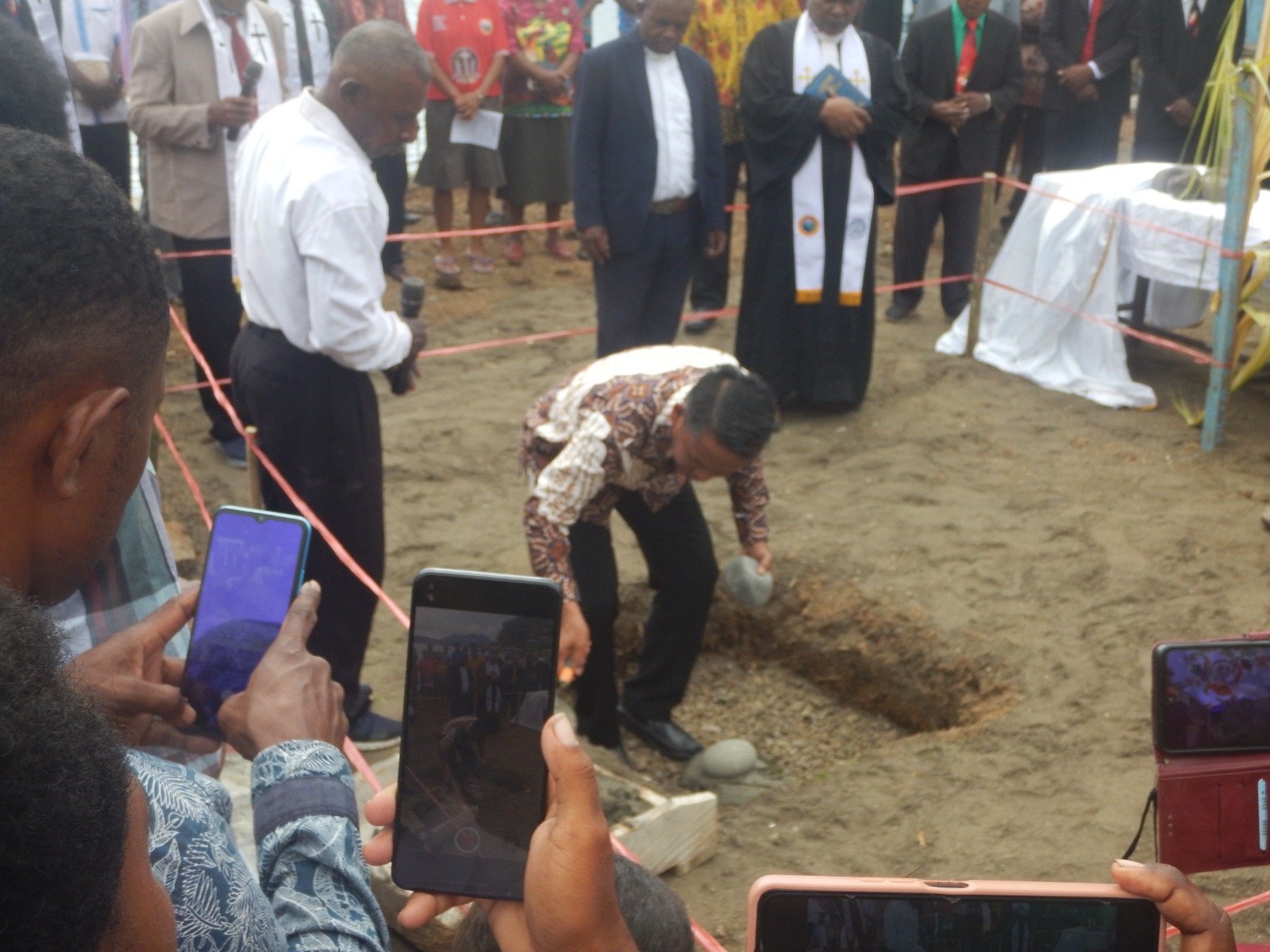 Melalui sambutannya, Bupati Benyamin Arisoy mengajak seluruh jemaat, PHMJ, dan panitia pembangunan untuk terus menjaga kebersamaan, kekompakan, serta semangat gotong royong selama proses pembangunan berlangsung.