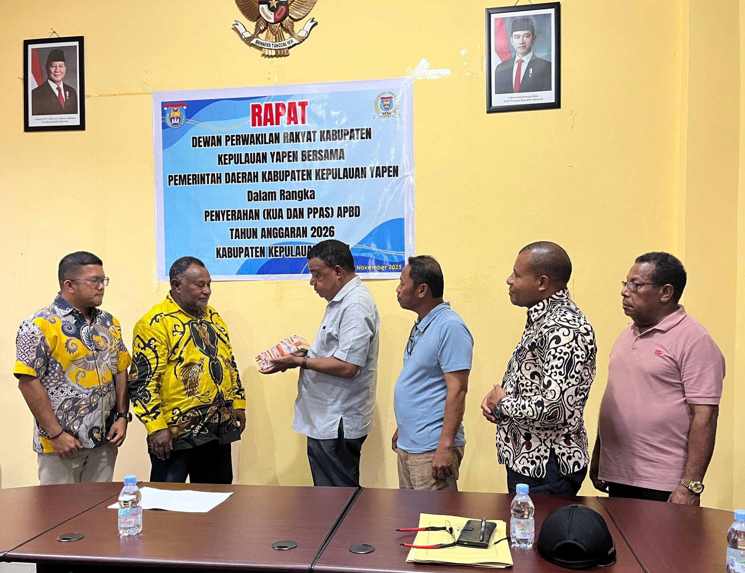 Serui – Pemerintah Daerah (Pemda) Kepulauan Yapen secara resmi menyerahkan dokumen Kebijakan Umum Anggaran (KUA) dan Prioritas Plafon Anggaran Sementara (PPAS) untuk tahun anggaran mendatang kepada Dewan Perwakilan Rakyat Kabupaten (DPRK) Kepulauan Yapen. Penyerahan ini menandai dimulainya tahapan penting dalam siklus perencanaan dan penganggaran daerah. Jumat, 28/11/2025.