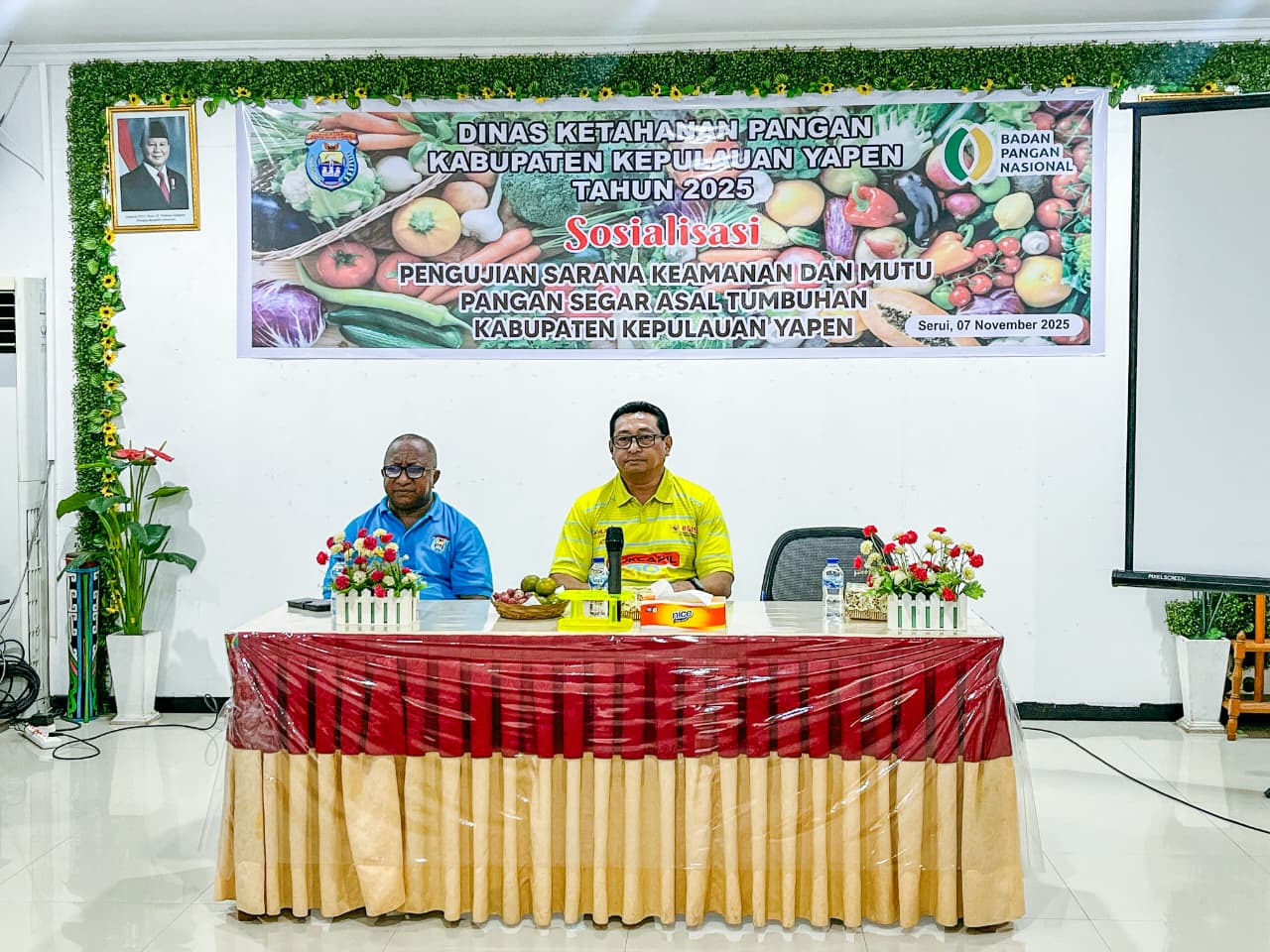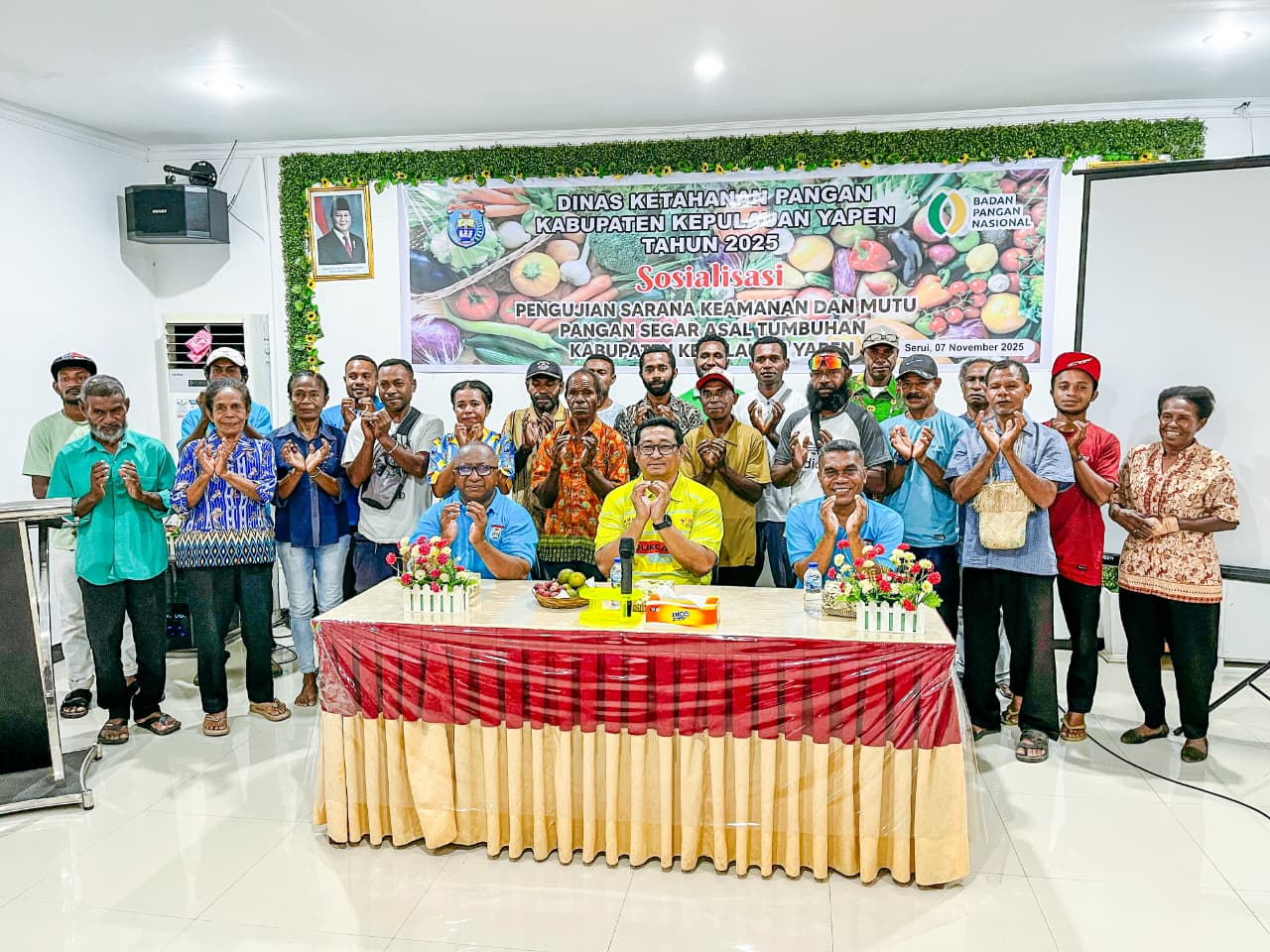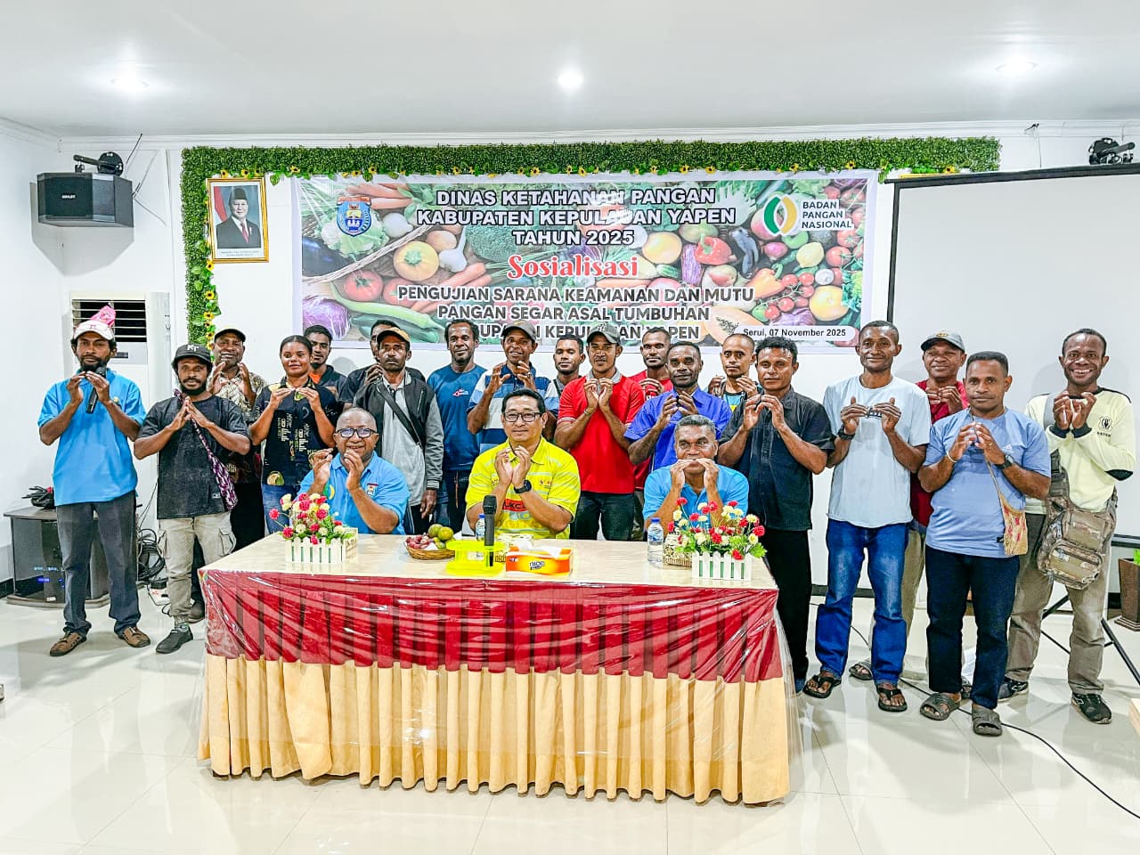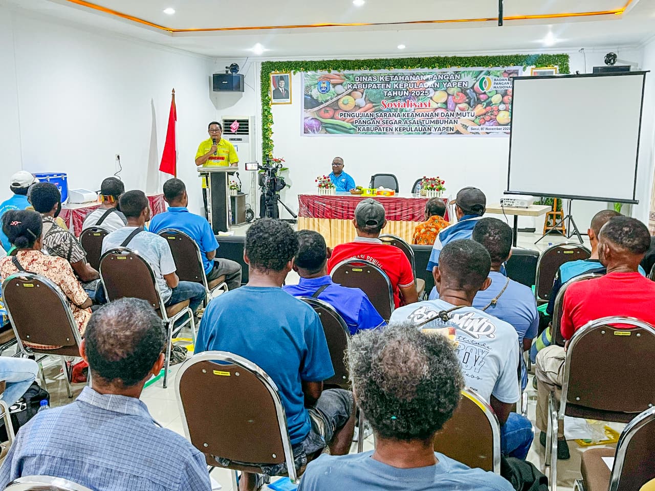 Serui – Pemerintah Kabupaten Kepulauan Yapen melalui Dinas Ketahanan Pangan (Ketapang) menggelar Sosialisasi Pengujian Sarana Keamanan dan Mutu Pangan Segar Asal Tumbuhan, Jumat (7/11/2025).