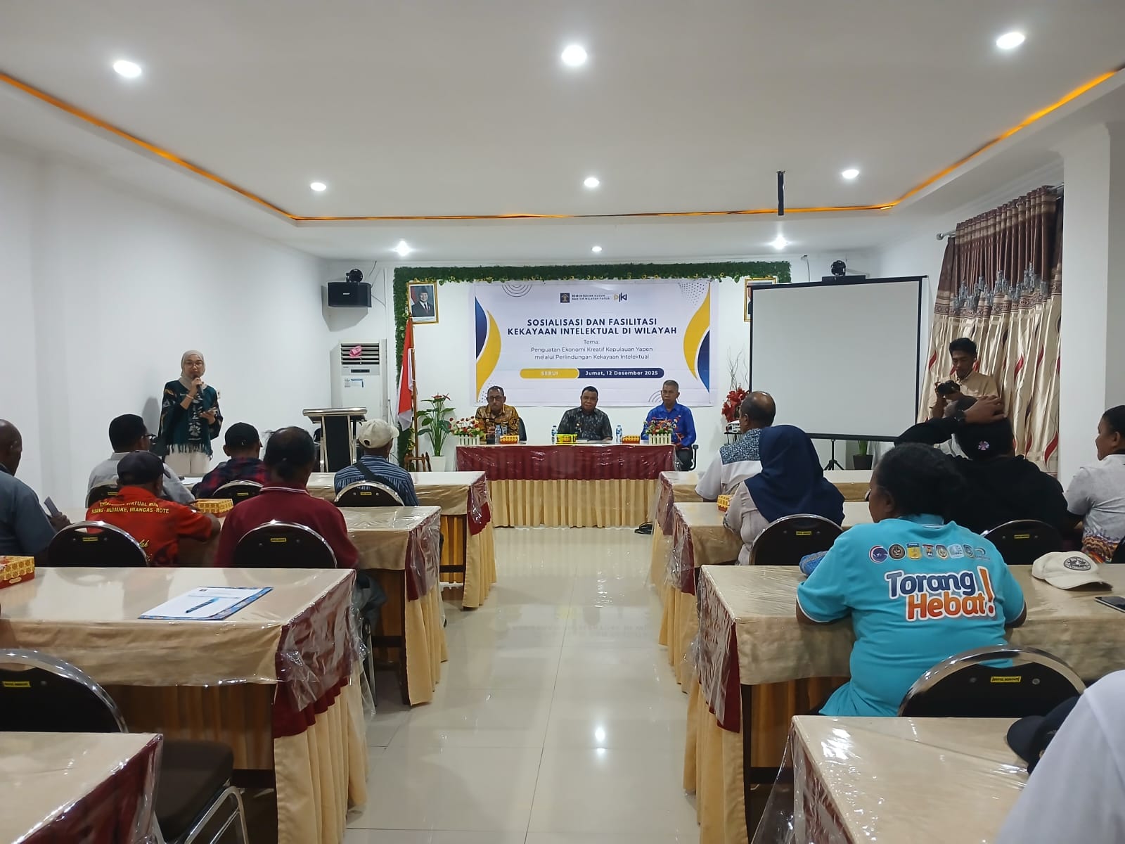 Bupati Benyamin Arisoy menyampaikan apresiasi kepada panitia penyelenggara serta seluruh pihak yang telah memfasilitasi kegiatan tersebut. Ia menegaskan bahwa sosialisasi kekayaan intelektual sangat relevan dengan perkembangan ekonomi saat ini yang semakin bertumpu pada kreativitas, inovasi, dan gagasan, bukan semata pada produk fisik.
