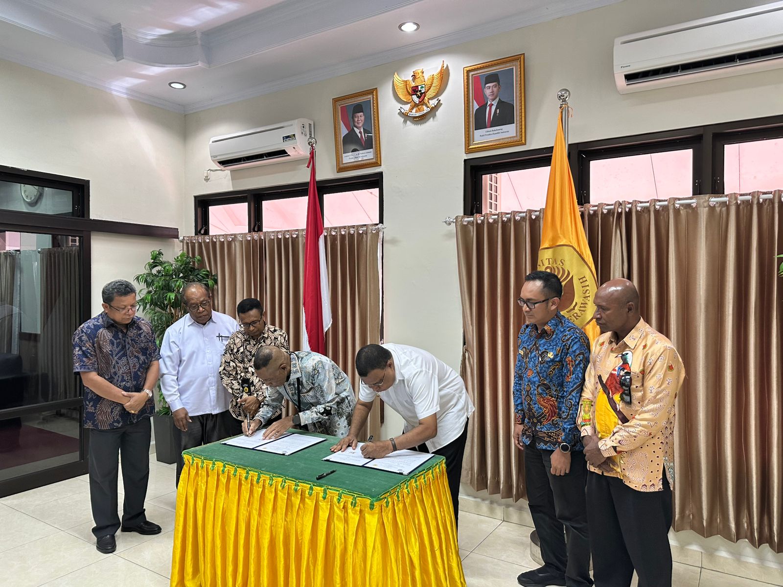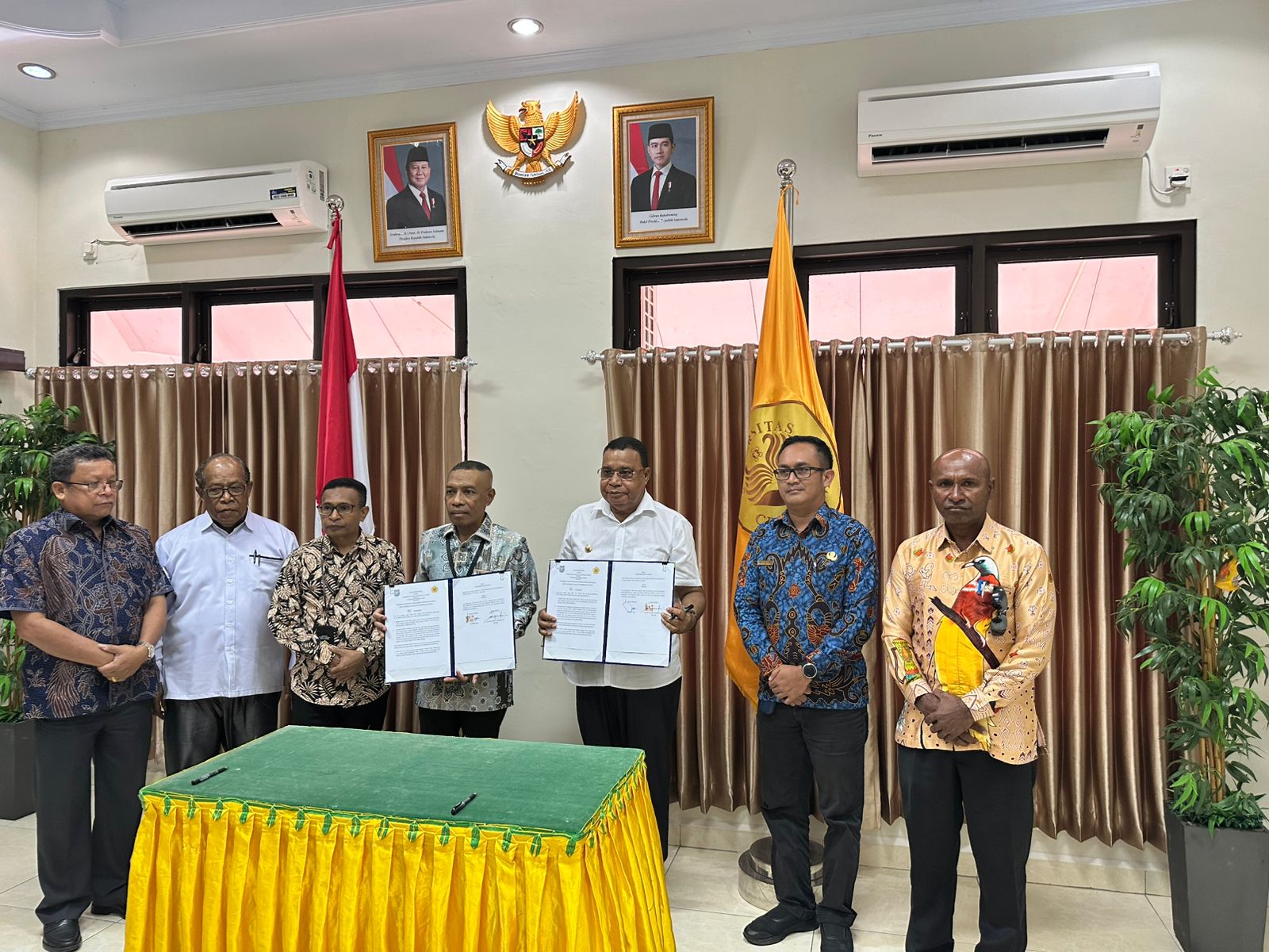 MoU ditandatangani langsung oleh Bupati Kepulauan Yapen, Benyamin Arisoy, S.E., M.Si, dan Rektor Universitas Cenderawasih, Dr. Oscar Oswald O. Wambrauw, S.E., M.Sc.Agr.