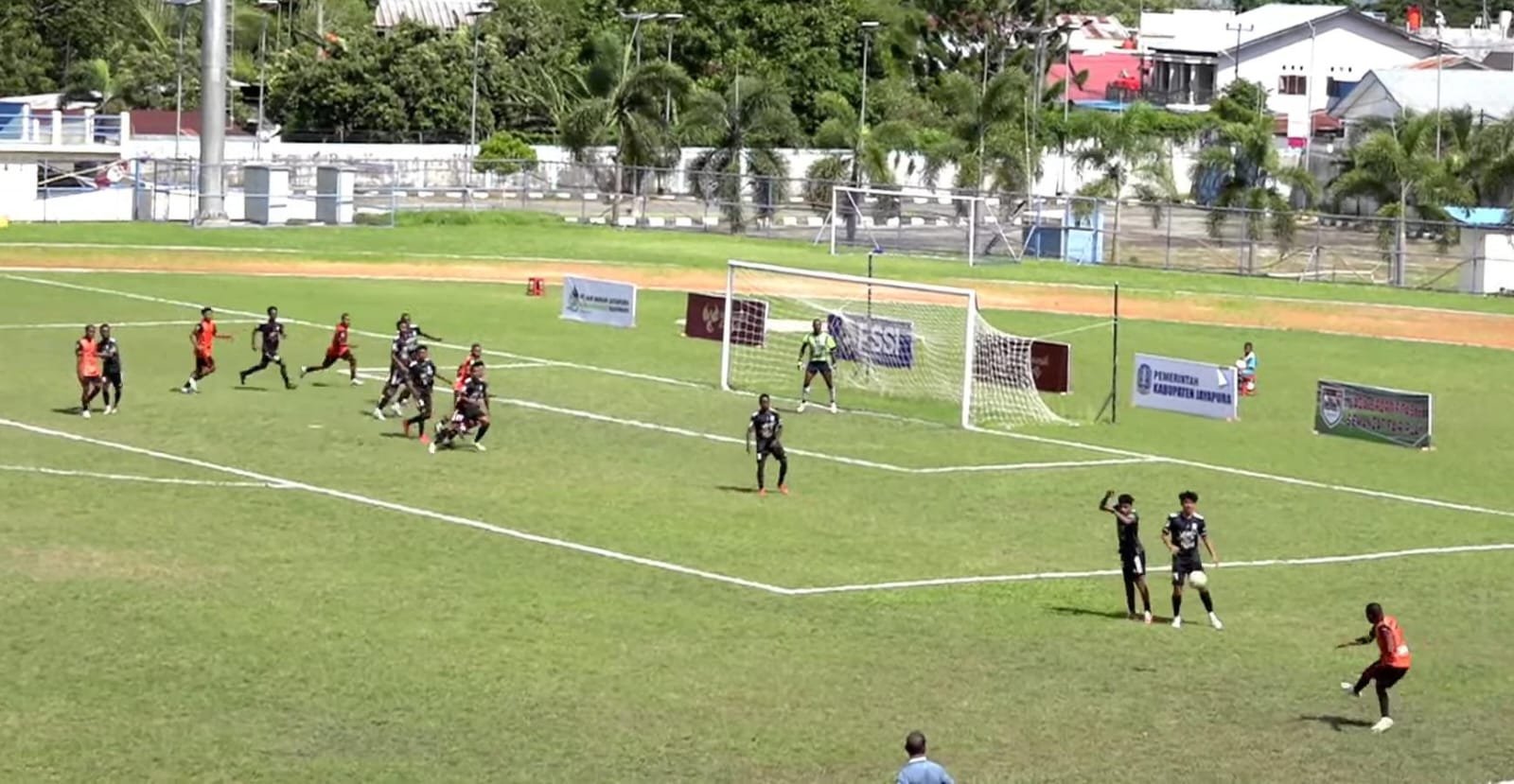 Laga baru berjalan di babak pertama, PS Yapen langsung menunjukkan taringnya melalui skema bola mati. Kapten kesebelasan, Boaz Atururi, membuka kran gol melalui eksekusi tendangan bebas melengkung dari sudut kiri yang gagal dihalau kiper lawan.