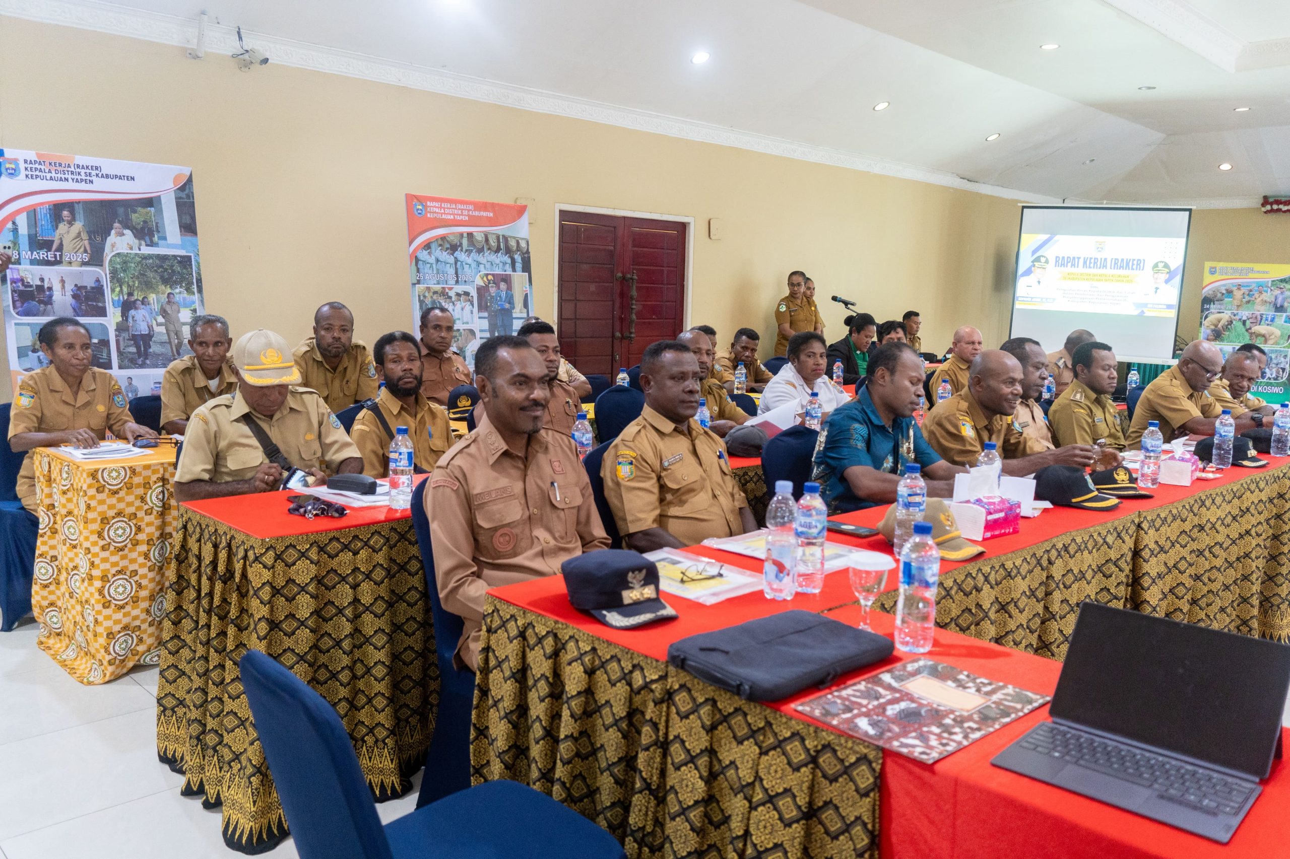 Serui – Pemerintah Kabupaten (Pemkab) Kepulauan Yapen menggelar Rapat Kerja (Raker) Kepala Distrik se Kepulauan Yapen yang bertujuan untuk memperkuat sinergi penyelenggaraan pemerintahan tingkat distrik, kelurahan hingga kampung.