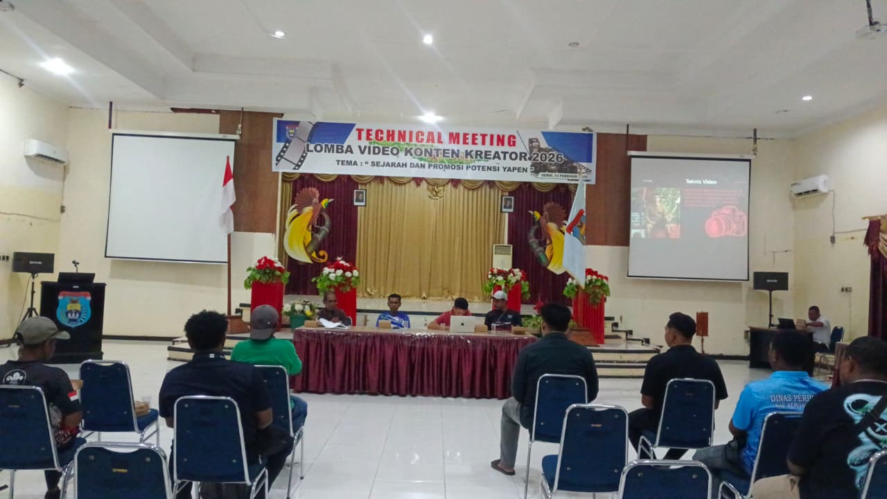 Serui – Menjelang peringatan Hari Ulang Tahun ke-57 Kabupaten Kepulauan Yapen, Panitia Lomba Konten Kreator Tahun 2026 menggelar technical meeting bagi seluruh peserta yang telah mendaftar. Kegiatan berlangsung di Gedung Silas Papare Serui, Jumat (13/02/2026).