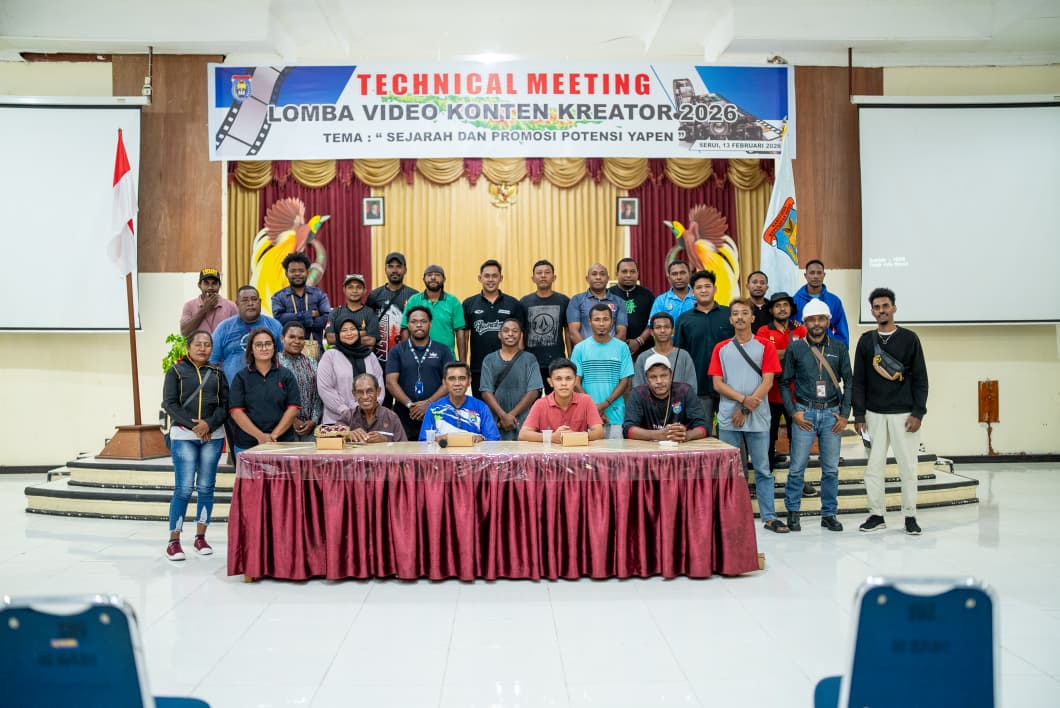Serui – Menjelang peringatan Hari Ulang Tahun ke-57 Kabupaten Kepulauan Yapen, Panitia Lomba Konten Kreator Tahun 2026 menggelar technical meeting bagi seluruh peserta yang telah mendaftar. Kegiatan berlangsung di Gedung Silas Papare Serui, Jumat (13/02/2026).
