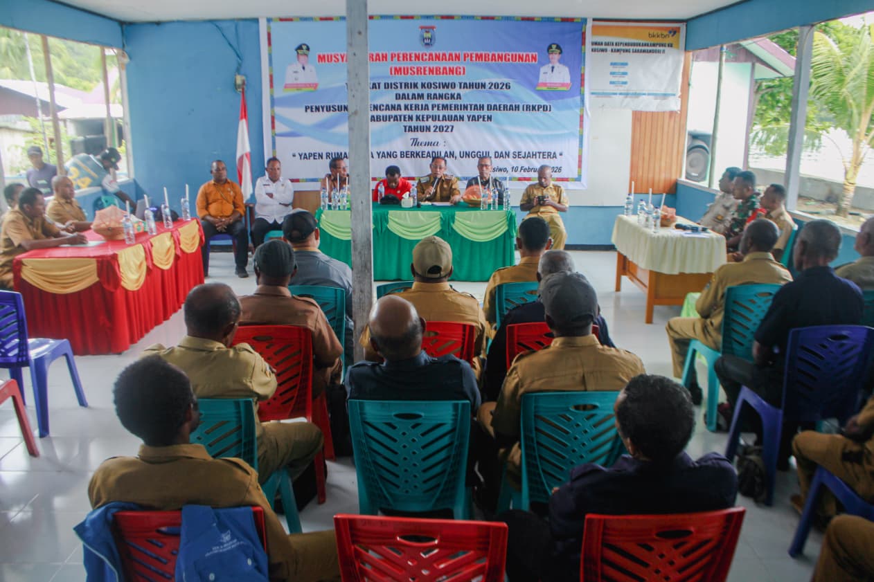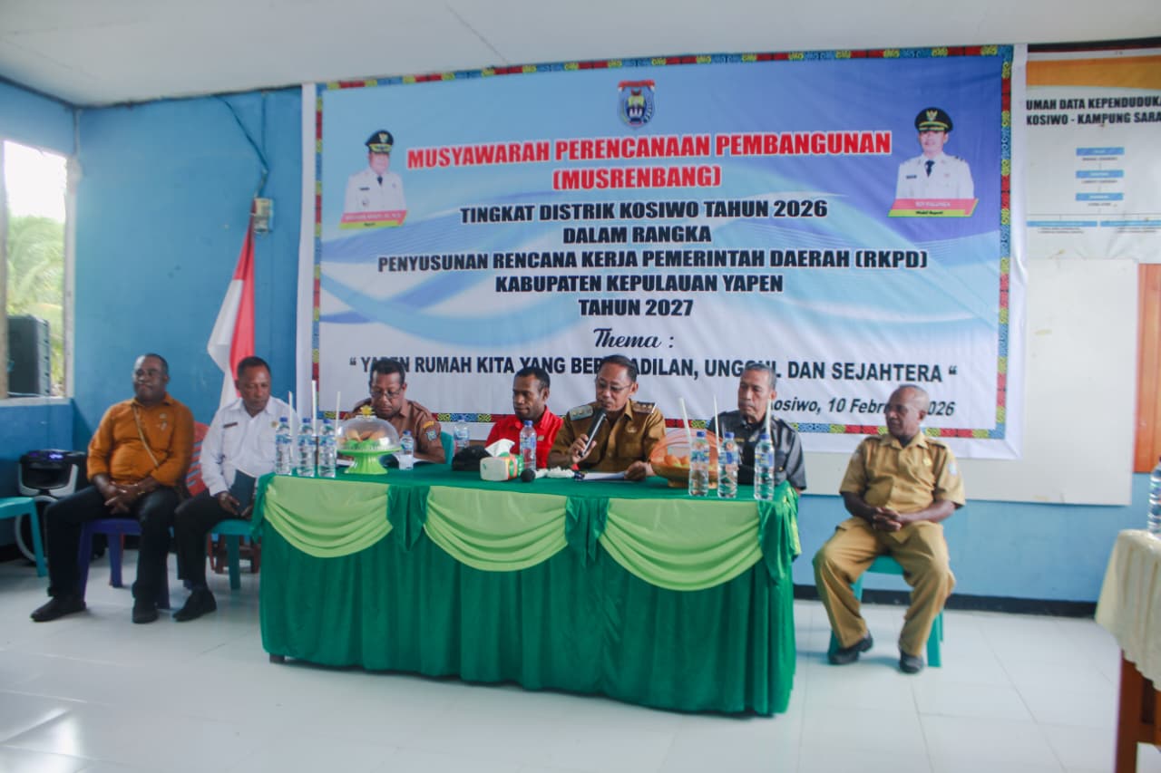 Pembukaan Musrenbang Distrik Kosiwo dipusatkan di Balai Kampung Sarawandori II, Selasa (10/2/2026), sesuai jadwal yang telah ditetapkan Badan Perencanaan Pembangunan, Riset dan Inovasi Daerah (Bapperida) Kabupaten Kepulauan Yapen.