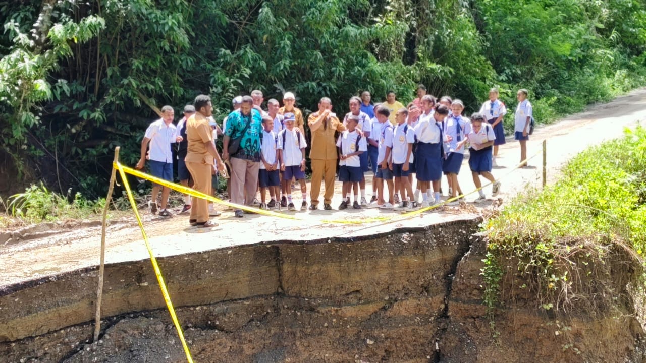 Longsor besar tersebut memutus badan jalan sehingga arus transportasi masyarakat menuju Ampimoi, Yapen Timur, dan Raimbawi terhenti.