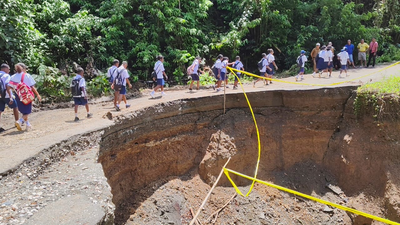 Roi Palunga langsung ke sisi jalan yang masih aman dan mengawal para siswa-siswi melintasi jalur yang tidak terdampak.