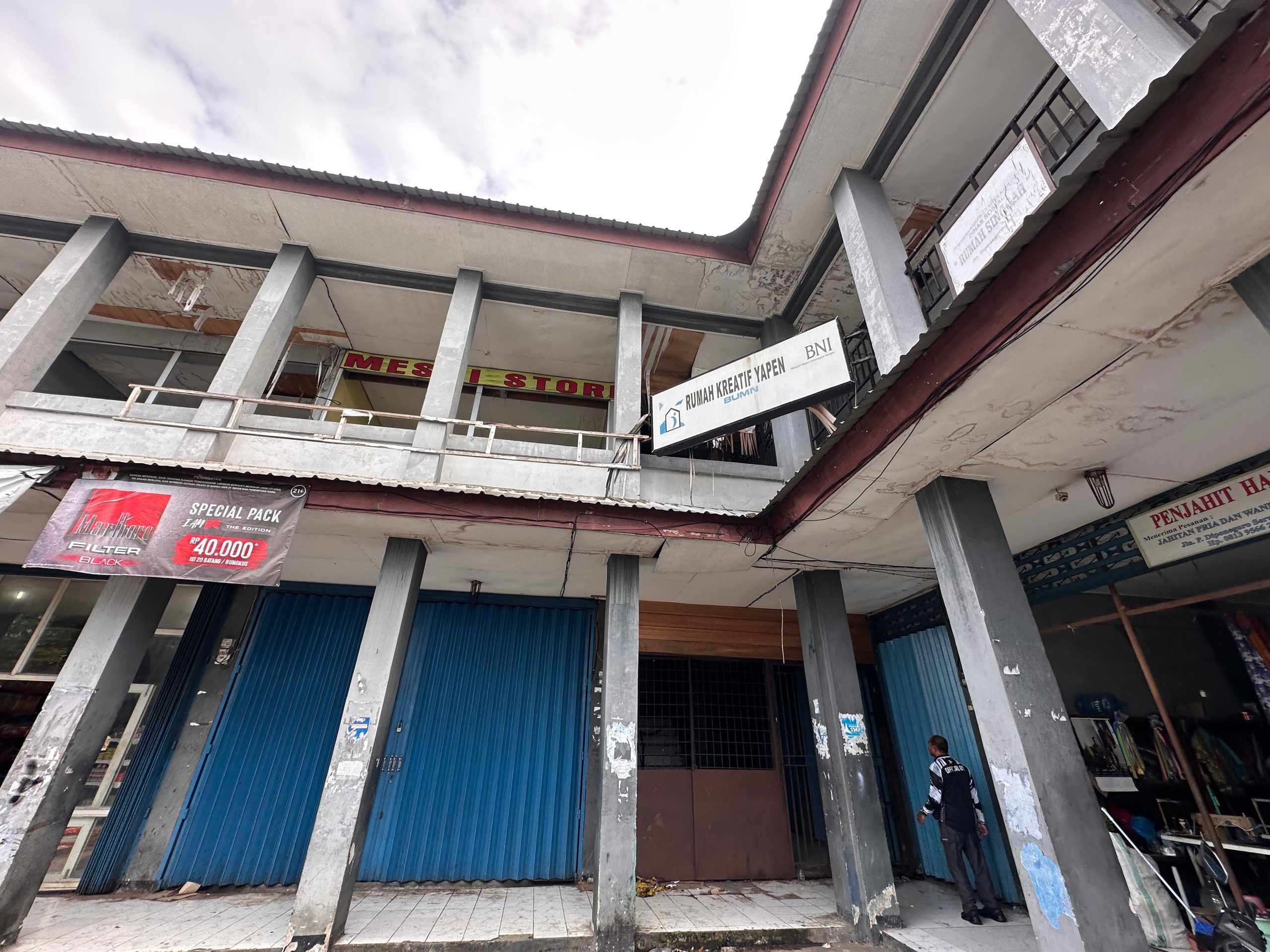 SERUI – Udara pagi di kawasan pelataran Serui terasa tenang, namun pemandangan deretan ruko milik Pemerintah Daerah Kepulauan Yapen tampak kontras: pintu yang tertutup rapat, cat yang mulai mengelupas, dan beberapa bagian bangunan terlihat tidak terurus.