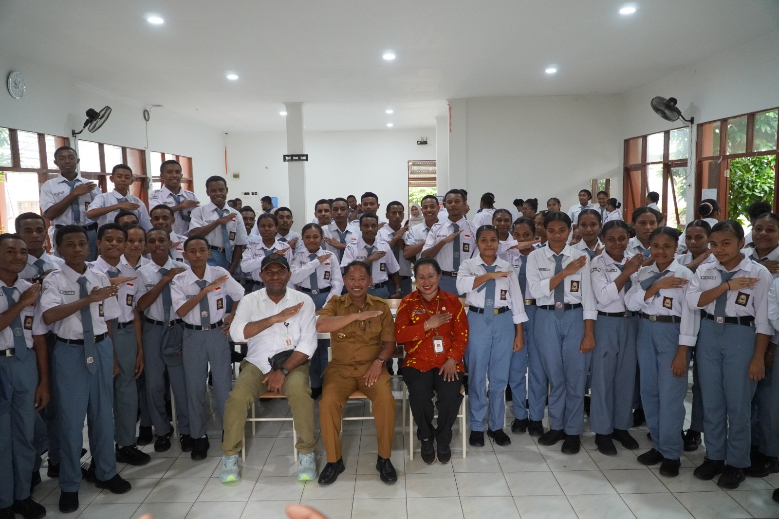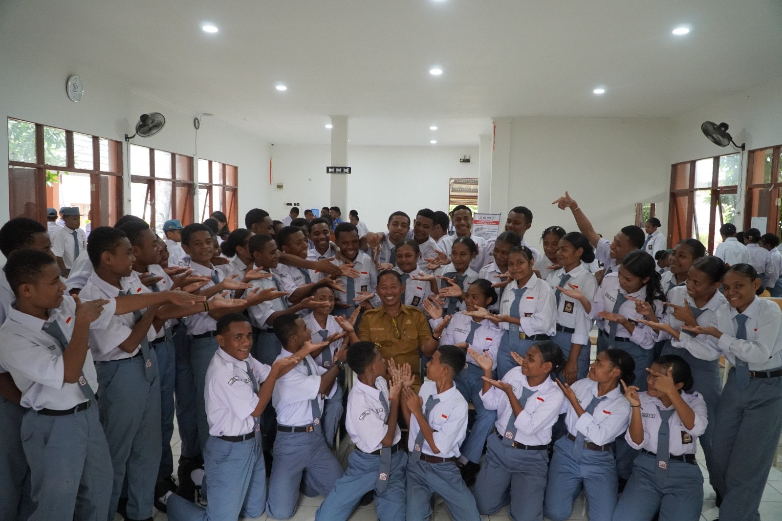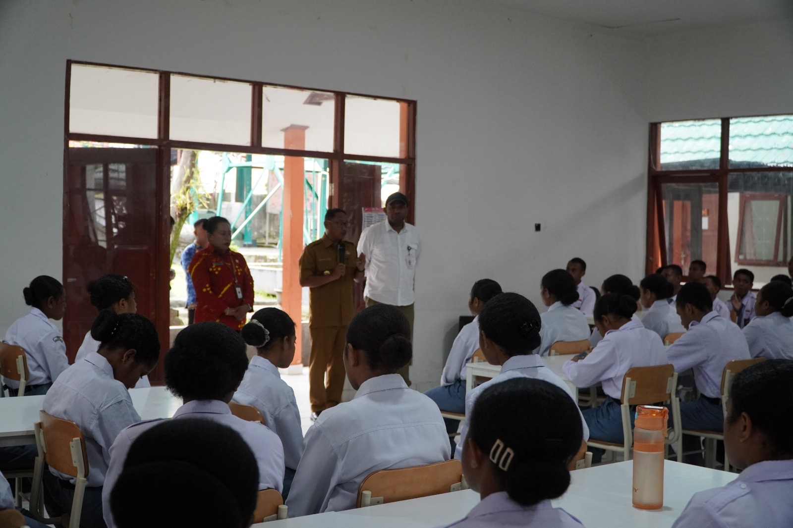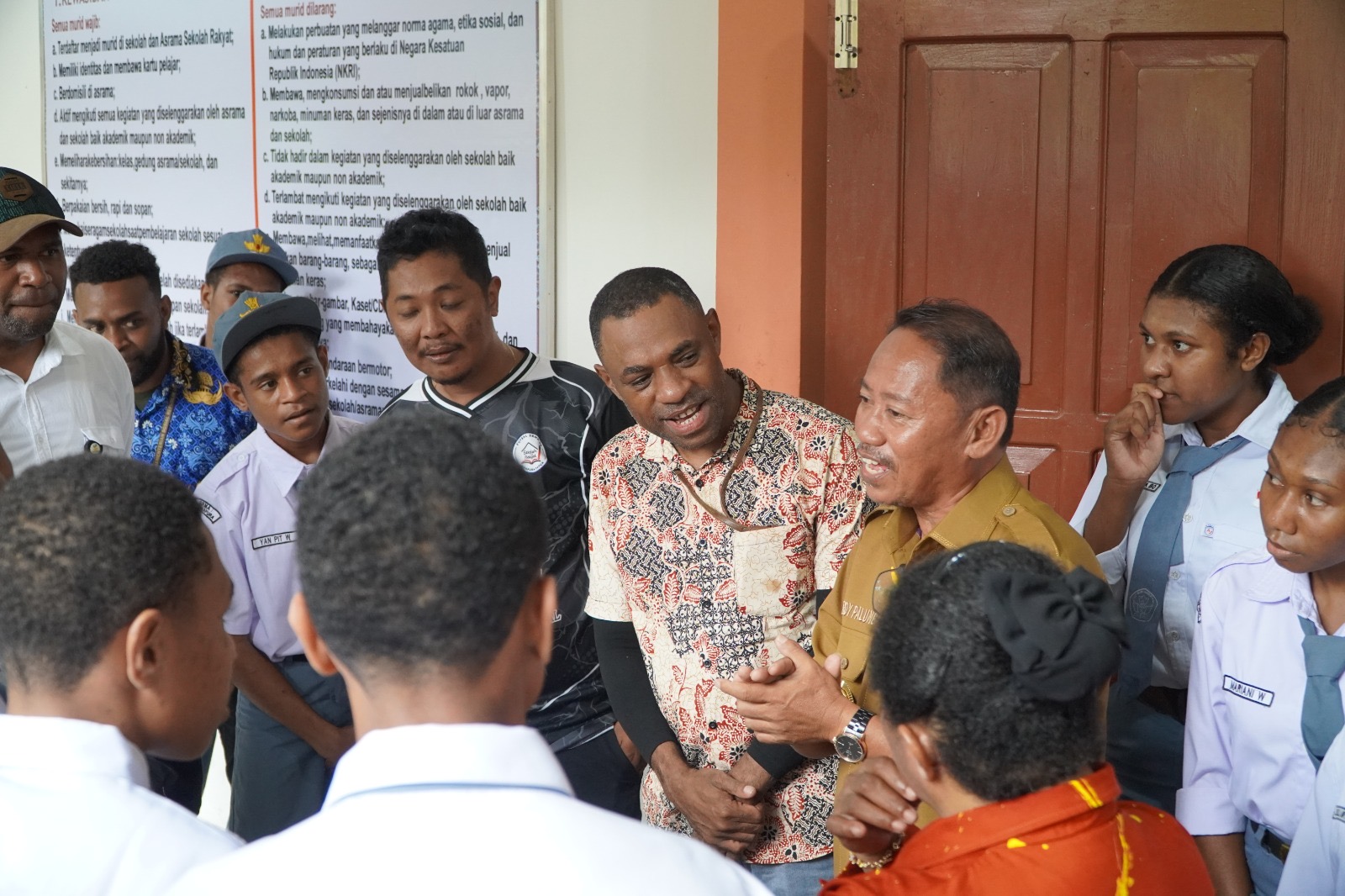 Suasana hangat tampak saat Wakil Bupati berdialog dengan para siswa. Mereka menyampaikan pengalaman belajar selama berada di Jayapura, termasuk kehidupan di asrama dan kegiatan sekolah sehari-hari.