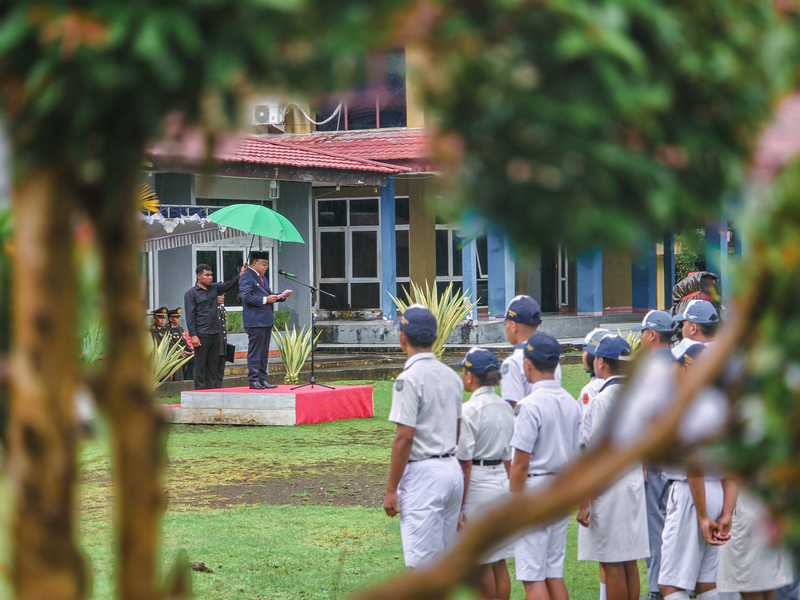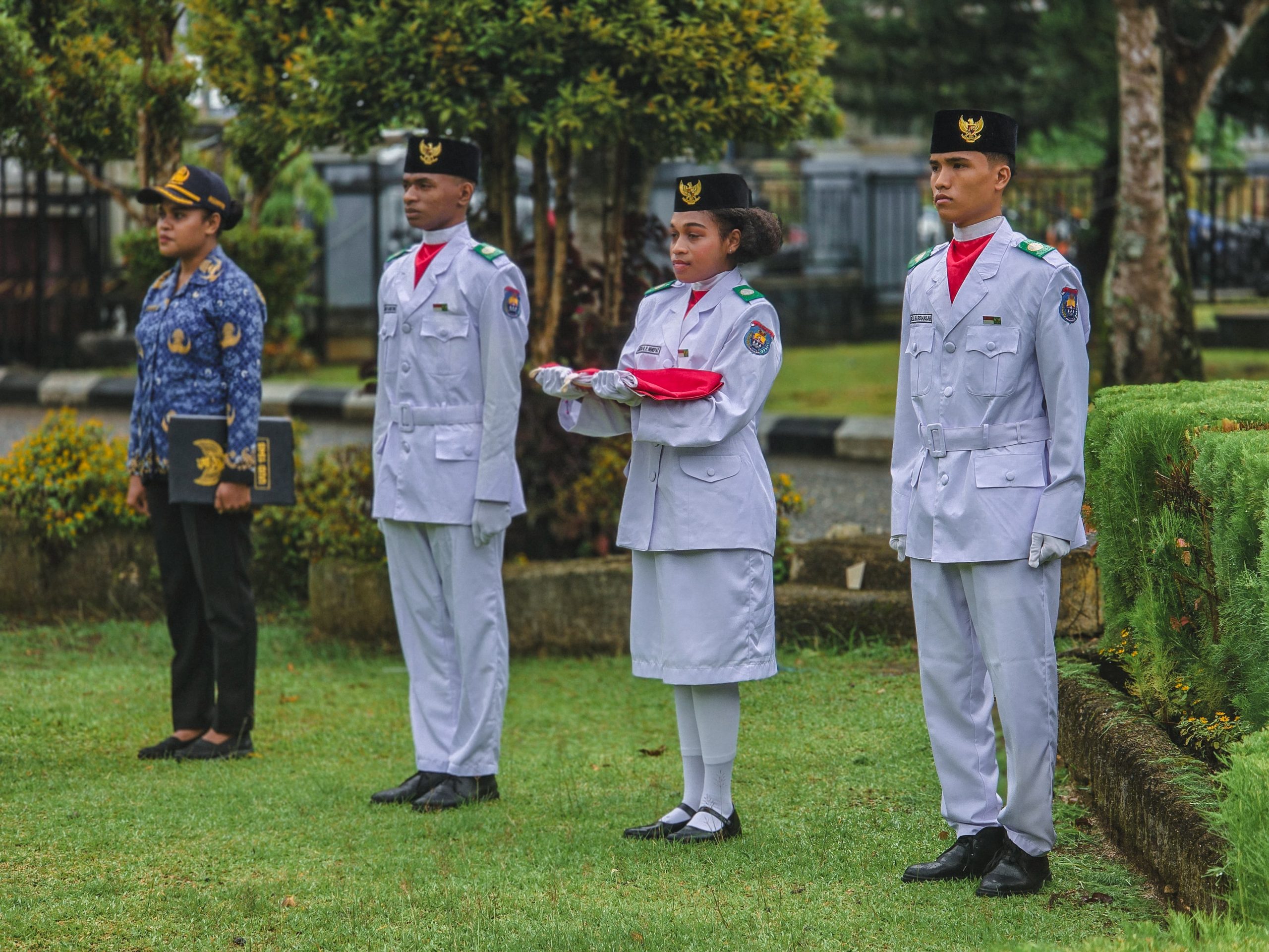 Meski cuaca tidak bersahabat, upacara tetap berlangsung khidmat, seakan membuktikan bahwa semangat perjuangan para pahlawan masih hidup di dada setiap anak bangsa.