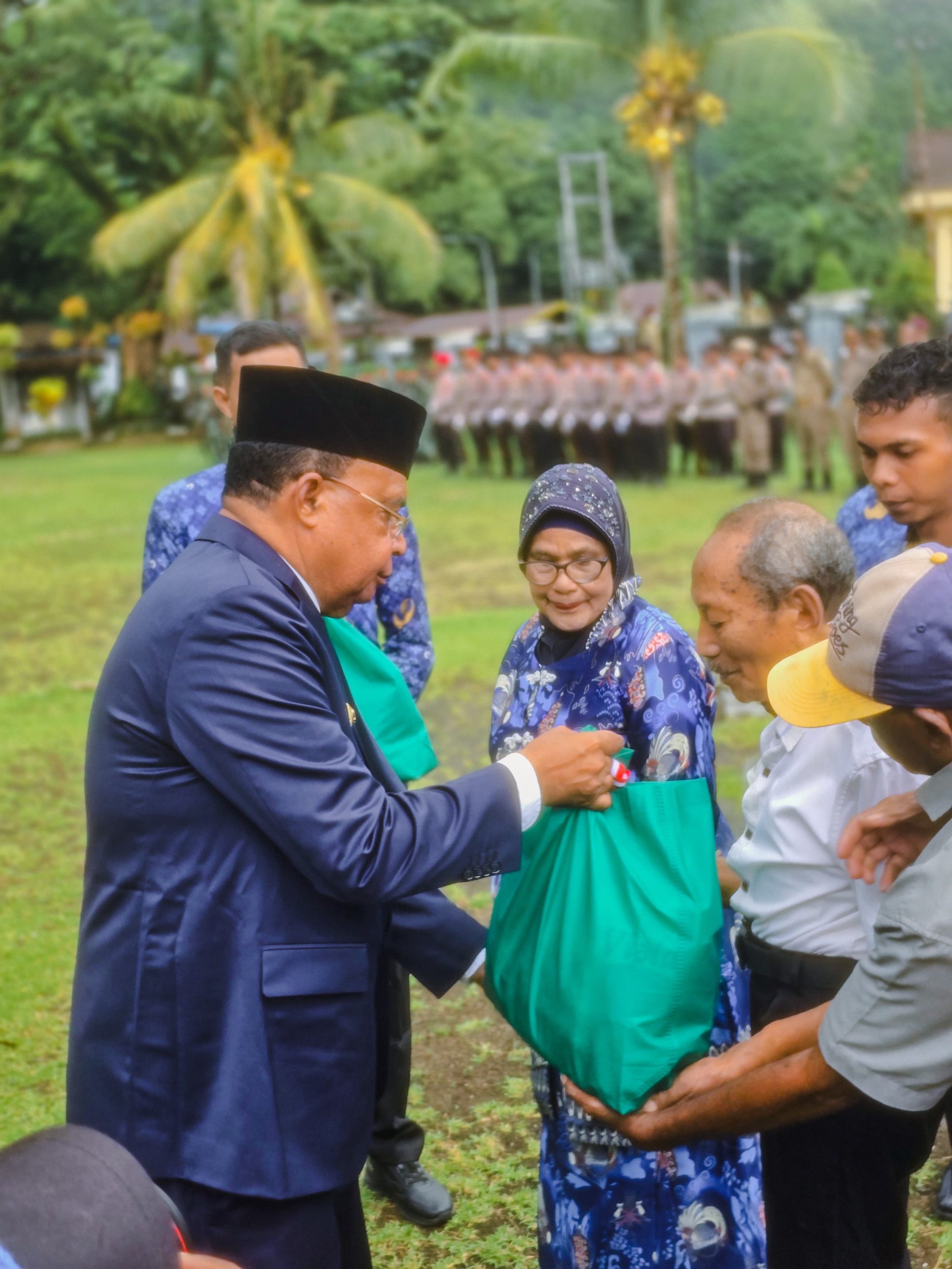 Usai upacara, Bupati Benyamin Arisoy menyerahkan bantuan sosial kepada keluarga pejuang yang ada di Kabupaten Kepulauan Yapen.