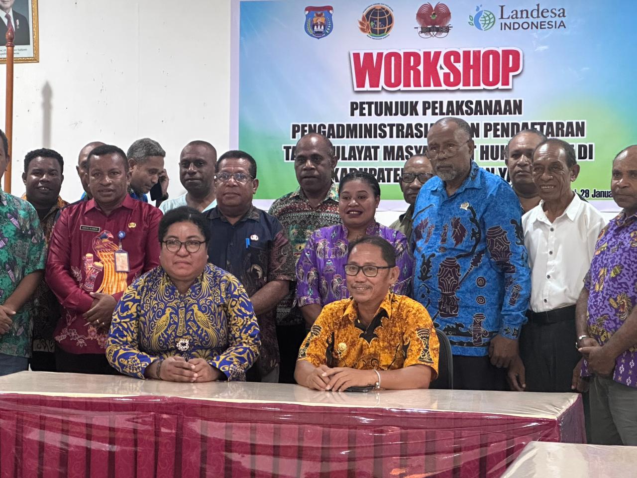 Serui – Pemerintah Kabupaten Kepulauan Yapen bersama Landesa Indonesia menggelar Workshop Pertunjukan Pelaksanaan Pengadministrasian dan Pendaftaran Tanah Ulayat Masyarakat Hukum Adat di Kabupaten Kepulauan Yapen. Kegiatan ini bertujuan untuk memperkuat pemahaman serta mendorong kepastian hukum atas hak-hak tanah ulayat masyarakat adat.
