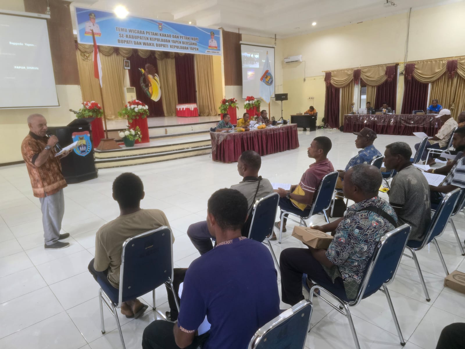 Dalam arahannya, Wakil Bupati Roi Palunga menyebut kakao dan kopi sebagai “emas hijau” Kepulauan Yapen yang selama ini tertidur dan belum dikelola secara optimal.